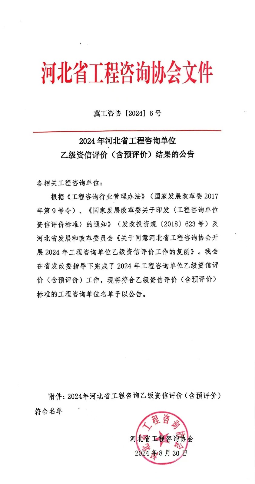 2024年8月30日,河北省工程咨詢協(xié)會(huì)發(fā)布《2024年河北省工程咨詢單位乙級(jí)資信評(píng)價(jià)(含預(yù)評(píng)價(jià))結(jié)果的公告》,河北華飛工程設(shè)計(jì)有限公司(以下簡稱“華飛工程”)成功延續(xù)工程...